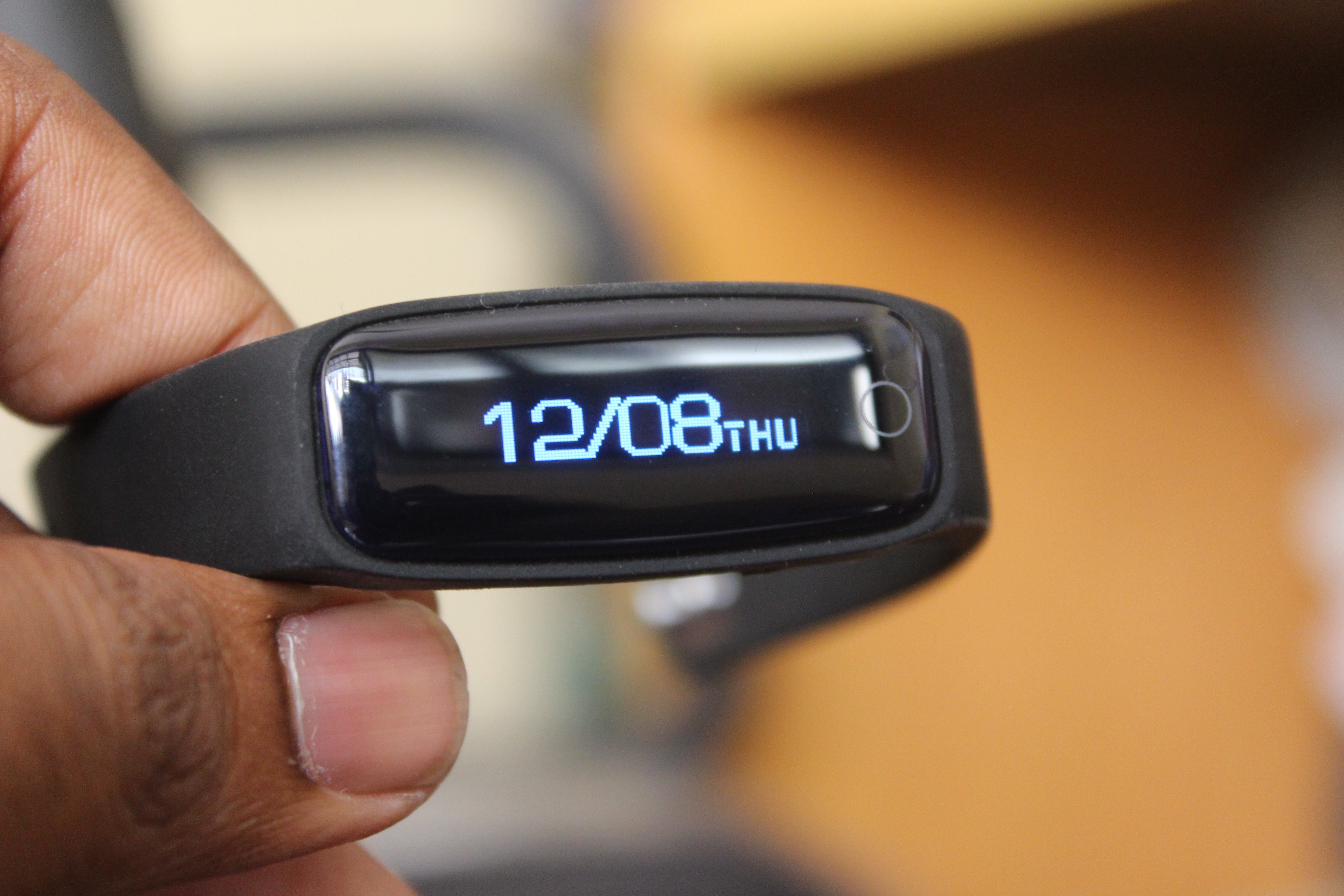 التصميم العام بسيط، مع زر واحد على رأس لتكشف بيانات اللياقة البدنية المختلفة.و في الخلف، هناك جهاز استشعار معدل ضربات القلب.